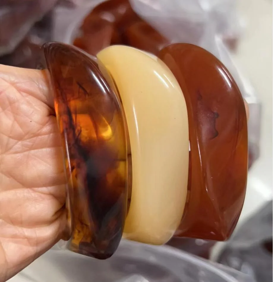 Conjunto de pulseras de resina marr...