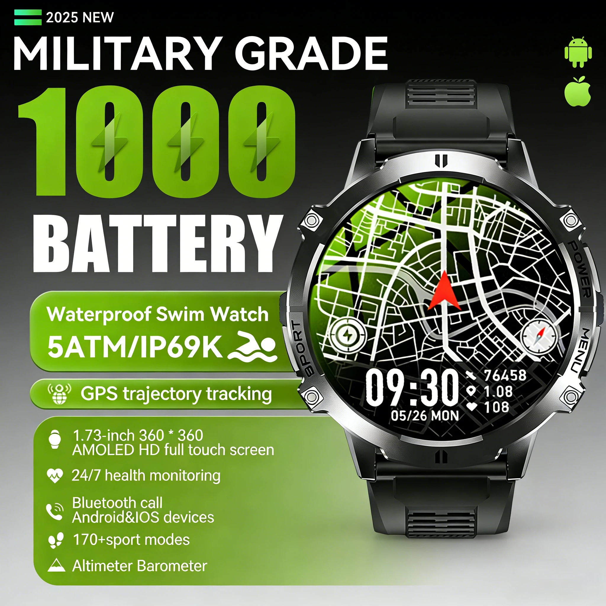 Reloj Inteligente Militar 2026, Bat...